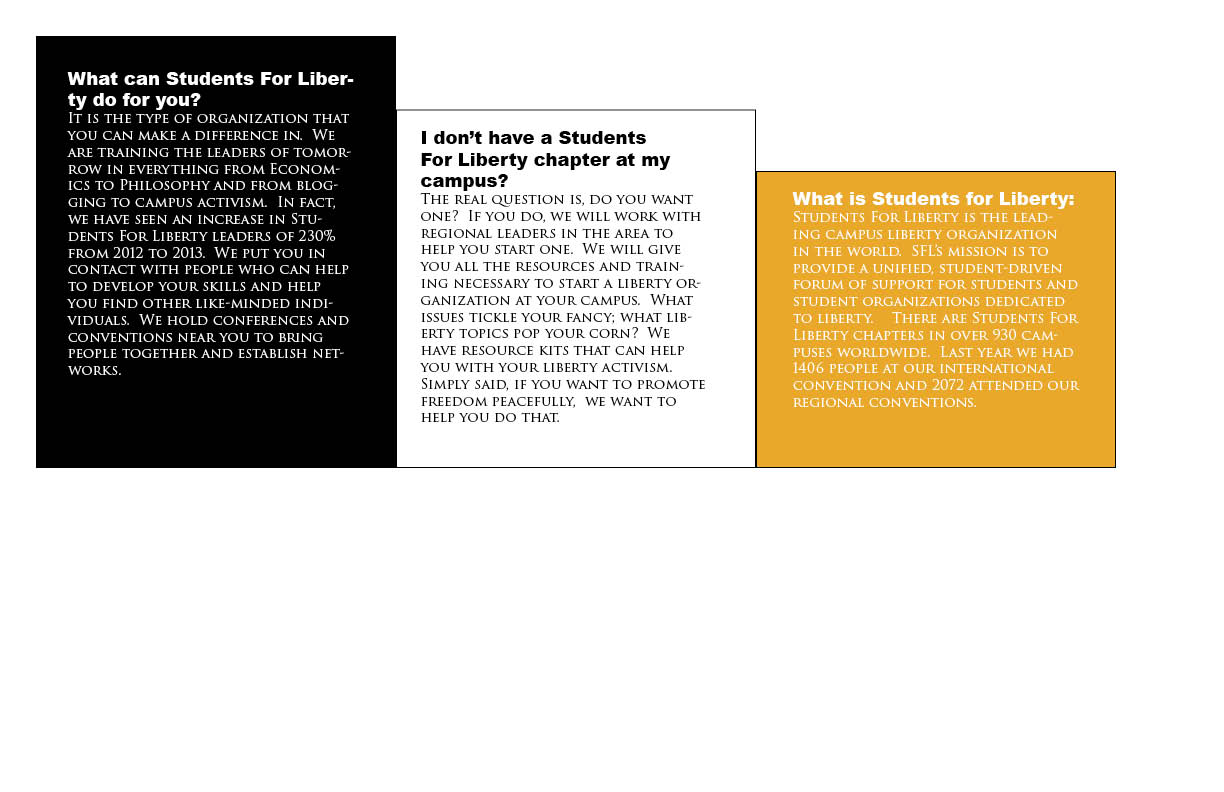 • Audience:  I want my audience to be anyone that would be interested in students for liberty literature.